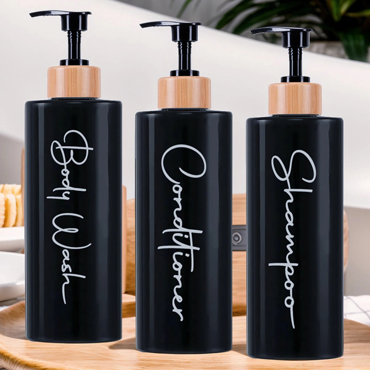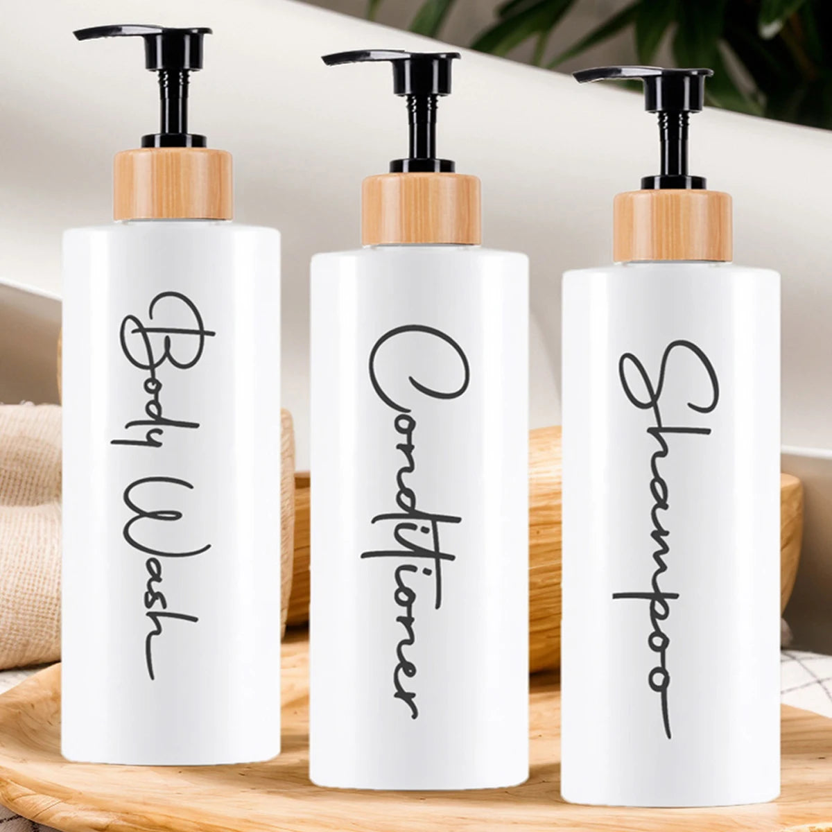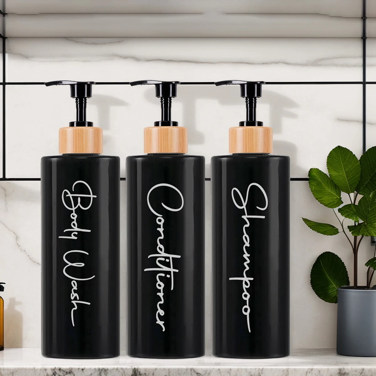 Descubra a elegância da simplicidade com o nosso conjunto de dispensadores de design minimalista. Originários do Oriente e concebidos em plástico de alta qualidade, estes três frascos de 500ml, livres de químicos nocivos, são a solução perfeita para um banho mais organizado e consciente. Escolha entre o clássico branco ou o intemporal preto para complementar o seu espaço, e desfrute da praticidade das etiquetas à prova de água. Um toque de luxo e sustentabilidade para o seu ritual diário.